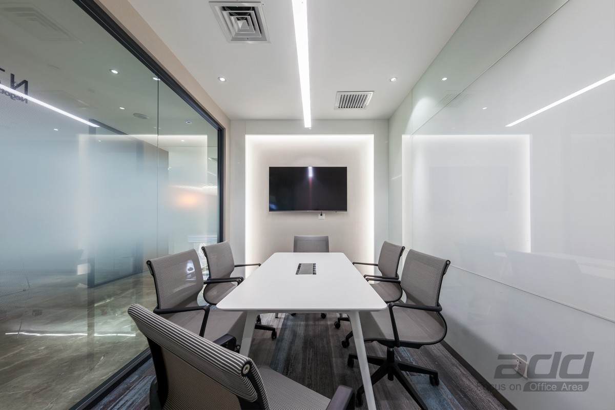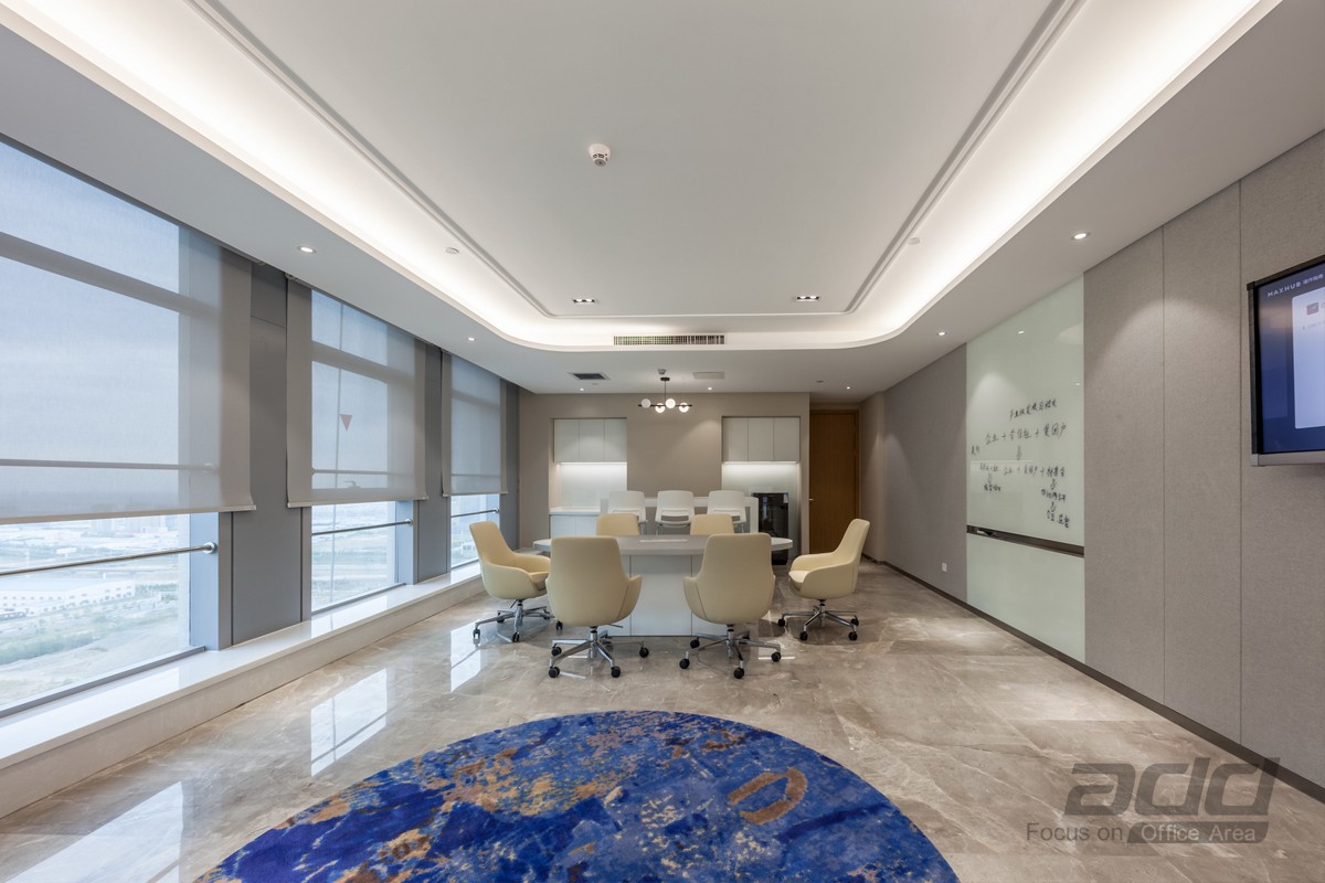 項(xiàng)目最大的挑戰(zhàn)是打造一個(gè)復(fù)雜和自由流動(dòng)的空間布局:將大廳和茶水區(qū)放置于同一軸線,以律師事務(wù)所的日常接待習(xí)慣為出發(fā)點(diǎn)配合動(dòng)線布置和視線聯(lián)接,既能夠?qū)崿F(xiàn)相對(duì)自由的環(huán)境,也能方便人員之間的溝通與交流,使空間關(guān)系更為交融和合理。